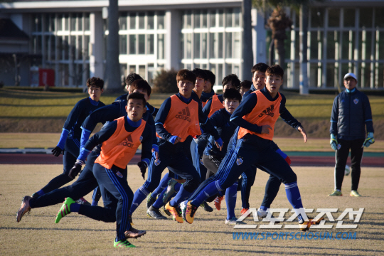 울산은 세트피스 훈련 등 승부처에서 돌파구를 찾기 위해 구슬땀을 흘리고 있다. 울산 선수들이 3일 이부스키시영육상경기장에서 진행된 팀 동계 전지훈련에서 오른쪽 측면서 올라오는 크로스를 받기 위해 골문 쪽으로 뛰어가고 있다.