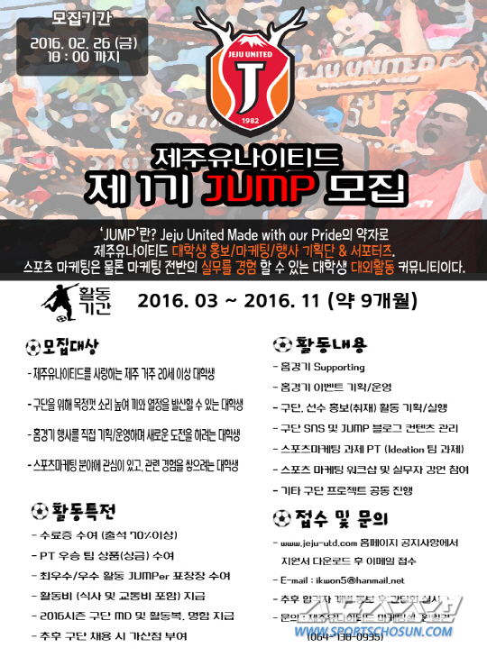 제주 유나이티드가 제1기 JUMP를 모집한다.