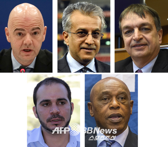 블래터 회장의 공백을 메울 이번 FIFA 회장 선거에는 바레인의 셰이크 살만 빈 에브라힘 알 칼리파 아시아축구연맹(AFC) 회장(51), 스위스 출신 지아니 인판티노 유럽축구연맹(UEFA) 사무총장(46), 알리 빈 알 후세인 요르단 왕자(41), 프랑스의 제롬 샹파뉴 전 FIFA 국제국장(58), 남아프리카공화국의 토쿄 세콸레 FIFA 반인종차별위원회 위원(63) 등 5명이 도전장을 냈다.