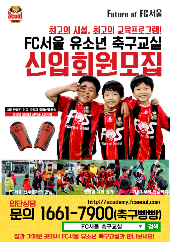 'Future of FC서울'의 신학기 회원모집 특별 이벤트 및 축구교실에 대한 자세한 안내와 정보는 홈페이지(http://academy.fcseoul.com)와 전화 1661-7900으로 문의하면 확인이 가능하다.
