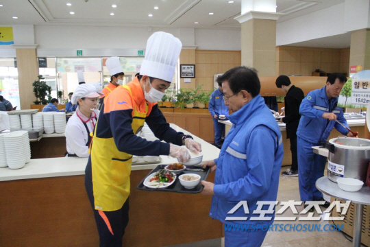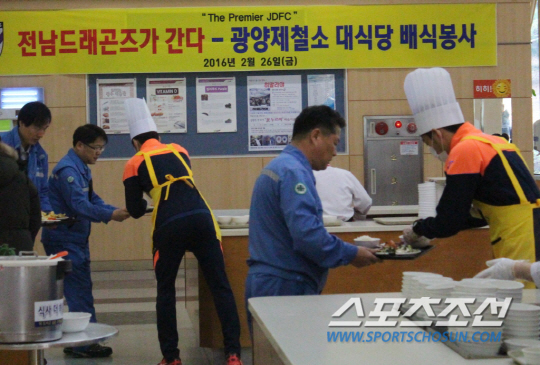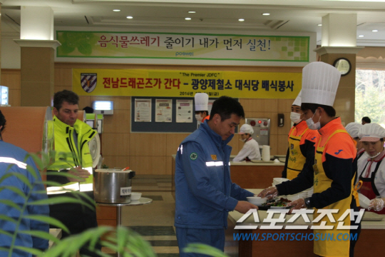 전남드래곤즈(사장 박세연)가 26일 광양제철소 대식당을 찾아 점심 배식 봉사를 실시했다. ,
