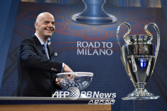 ◇UEFA 사무총장 재임 시절 유럽챔피언스리그 대진 추첨을 진행 중인 지아니 인판티노 신임 FIFA회장. ⓒAFPBBNews = News1