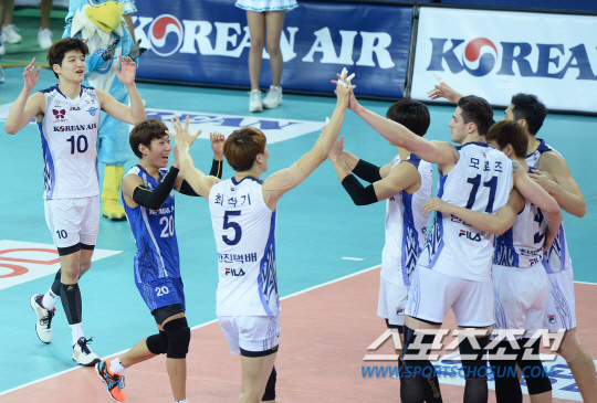 '봄배구'를 향한 기세가 뜨겁다. 대한항공은 지난달 29일 OK저축은행과의 원정경기에서 3대0 완승을 거뒀다. 3연승의 신바람을 냈다. 7연패에 빠졌을때만 하더라도 대한항공의 포스트시즌 진출은 불투명해보였다. 그 사이 삼성화재는 4연승을 이어갔다. 그러나 대한항공이 마지막 집중력을 발휘하며 반전을 노리고 있다.
