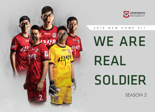 2016시즌 유니폼은 강인한 느낌을 주는 군인의 상징 '밀리터리'를 모티브로 하였으며, 앞면에 들어가는 상주 상무를 기존 고딕체에서 캘리그라피로 변경하여 디자인적 측면의 느낌을 살렸다. 또 원정 유니폼에는 상주시의 대표적인 특산물인 곶감색으로 글씨를 새겨 아이덴티티를 표현했다.