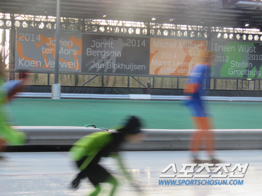 1층에 위치한 아이스링크 '더 베흐츠 바는'에는 평일 오후 4시에도 동호인, 선수들이 넘쳐났다. 예닐곱살 꼬마부터 60세를 훌쩍 넘긴 노인까지 저마다 자신의 속도로 스케이팅을 즐겼다. 평일에는 하루 1000명, 겨울방학 등 성수기에는 하루 2000명이 이 링크를 이용한다. 지역 클럽팀 소속의 에이미(13), 펠리시아(14), 아눅(15)이 나란히 얼음을 지치다, 카메라를 보고 손을 흔들었다. "올림픽은 아직 모른다. 취미로 친구들과 재밌게 스케이트를 타고 있다"고 했다. 대부분 6~8세에 스케이트를 처음 신었다. 펠리시아는 "여섯살 때부터 선수인 오빠를 따라 스케이트를 시작했다. 스케이트가 정말 멋있고 좋다"며 활짝 웃었다. 볼이 발그스레 달아오른 소녀들이 얼음판을 씽씽 질주했다. 링크 벽면에는 세계를 제패한 스벤 크라머, 밥 데용 등 '빙속 영웅'들의 이름이 빼곡이 새겨져 있었다.