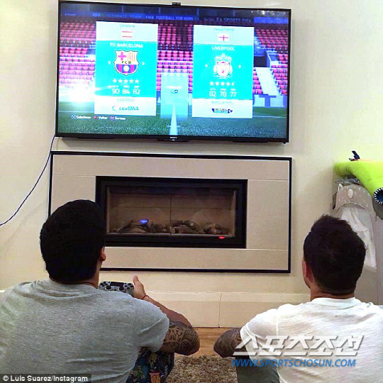 루이스 수아레스가 '친정' 리버풀을 깜짝 방문했다. 수아레스는 9일(한국시각) 자신의 인스타그램을 통해 리버풀 옛동료 필립 쿠티뉴의 집에서 FIFA16 게임을 즐기는 모습을 공개했다. 두 선수는 바르셀로나와 리버풀을 놓고 맞대결을 펼쳤다.'언제나처럼 내친구 필 쿠티뉴에게 뭔가를 가르치며. 친구들 모든 것에 감사한다'고 썼다. 주말까지 경기가 없는 바르셀로나에서 짧은 휴가가 허락됐다. 잉글랜드로 날아와 모처럼 망중한을 즐겼다.