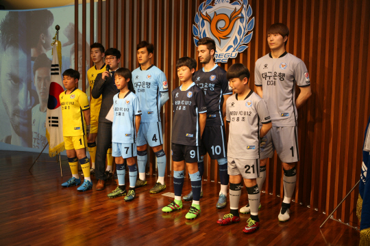 대구FC가 9일 '2016 대구FC 출정식'에서 2016시즌 선수단 유니폼을 발표했다.