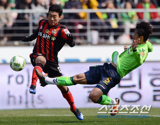몸 상태가 좋았던 고무열이 부상으로 빠진 가운데 파탈루와 이재성이 중원을 책임진다. 공수 조율은 루이스에게 맡겼다. 그리고 '트윈타워' 이동국과 김신욱 투톱이 전반부터 가동됐다.