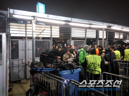 경기 시작 전 누캄프 전역은 혼돈 그 자체였다. 배수가 잘 안되는 인도는 이미 물난리였다. 입장권 검사와 몸수색을 동시에 진행하는 게이트에는 수많은 사람들이 몰렸다. 병목현상이 일어났다. 관중들이 들고 있는 우산까지 맞물렸다. 고작 10미터 나아가는데 30분 이상이 걸렸다. 경기 시간이 다가올수록 경기장 주변은 더욱 혼돈이었다. 빨리 진행하라고 소리를 질러대는 사람도 있었다. 빅게임 앞에서 가방을 버리는 이들도 속출했다. 누캄프 내에는 백팩 반입이 안된다. 때문에 보안 관계자들은 가방을 버리든지 들어가지 말든지 선택하라고 했다. 일부 관중들은 실랑이를 벌이기도 했다.
