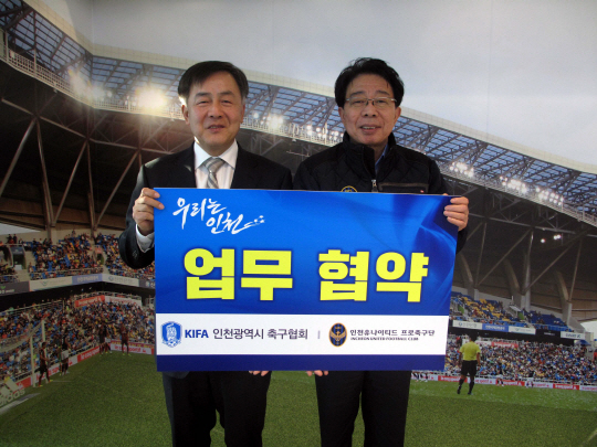 인천 유나이티드와 인천광역시축구협회가 상생 협력을 통한 공동 발전을 위해 업무 협약을 맺었다.