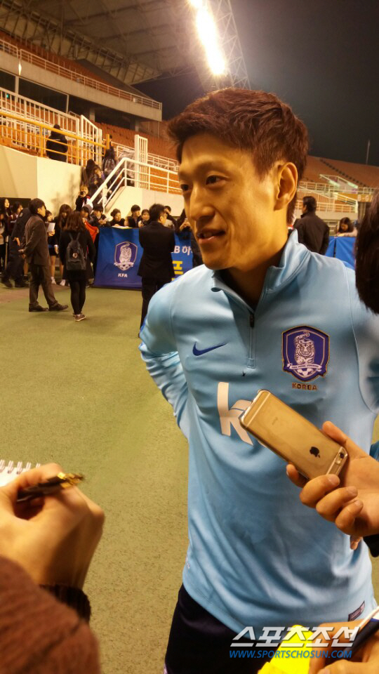 21일 안산 와스타디움에서 진행된 공개훈련 종료 뒤 인터뷰를 하고 있는 이청용. 안산=임정택 기자