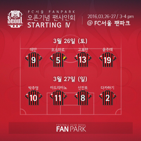 팬 사인회에는 하루에 250명씩 총 500명의 팬을 대상으로 진행한다. 참여 방법은 사인회 당일 'FC서울 팬 파크(FC SEOUL FAN PARK)'에서 1만원 이상 구매자 중 선착순 150명에게 기회를 제공한다. 이와 함께 2016 시즌 티켓 회원 100명(50명/일), FC서울 공식 SNS를 통해 100명(50명/일)을 선발한다.