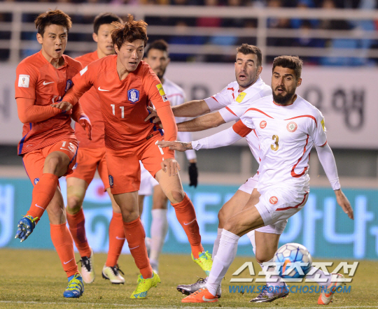 레바논은 전반 수비 일변도의 플레이를 펼쳤다. 원톱인 하산 알리를 제외하고 10명이 촘촘하게 수비벽을 구축했다. 하지만 태극전사들은 그 벽을 뚫지 못했다. 한국은 기성용의 넓은 시야를 바탕으로 한 좌우 볼 배급으로 공격에 시동을 걸었다. 전반 초반 오른쪽 날개에 포진한 이재성이 윙백 장현수와 찰떡궁합을 과시하며 상대를 뒤흔들었다.