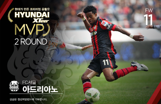 한편 '현대엑스티어 MVP' 1라운드는 광주의 공격을 이끌며 포항을 상대로 2골을 기록한 정조국(광주)이, 2라운드는 상주를 상대로 1골-1도움을 올리며 승리를 견인한 FC서울의 아드리아노가 선정된 바 있다.