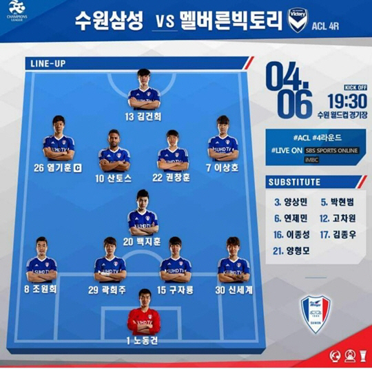 2선 공격라인은 산토스-권창훈을 비롯해 염기훈-이상호가 양 측면을 맡는다.
