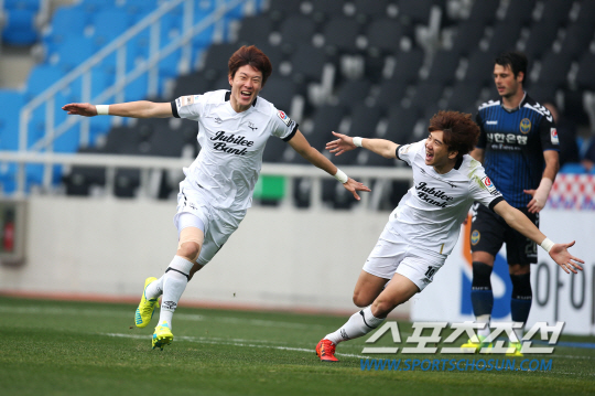 골 장면을 돌아보자. 전반 5분, 티아고의 크로스를 헤딩 골로 연결했다. 21분에는 곽해성의 크로스를 마무리지었다. 왼발이 터졌다. 두 장면의 공통점은 바로 '타이밍'이다. 공격의 흐름 속에서 들어가야 하는 '순간 포착'을 제대로 했다. 공격에 또다른 눈을 떴다는 것이다. "스스로 틀을 깨라"며 김 감독이 주문했던 변화다.