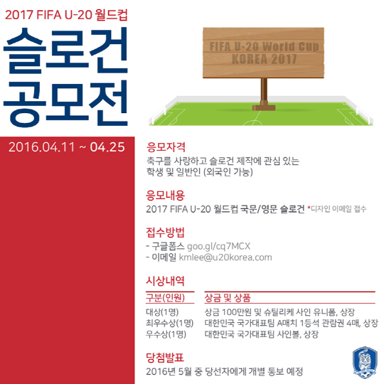 2017년 국제축구연맹(FIFA) 20세 이하(U-20) 월드컵조직위원회가 공식 슬로건을 공모한다.