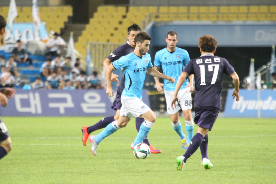 대구는 2014시즌 안양에 한 차례도 승리하지 못했지만, 지난 시즌 1승2무1패 박빙의 승부를 펼쳤다. 특히 마지막 경기에서는 조나탄의 연속골에 힘입어 2대0을 기록, 안양전 첫 승에 성공했다. 조나탄은 없지만 파울로와 에델이 대구의 공격을 이끌고 있다. 파울로와 에델은 1라운드 대전전에서 나란히 시즌 첫 골을 터트린 데 이어 13일 고양전에서도 1골씩을 기록하며 팀의 3대1 승리를 이끌었다. 뿐만 아니라 공격수 세징야와 미드필더 이재권이 날카로운 패스와 부지런한 움직임으로 이들을 지원사격할 예정이다.