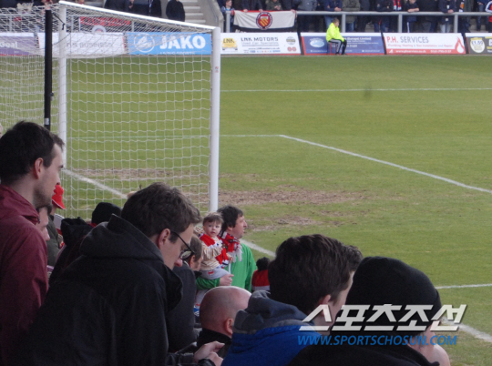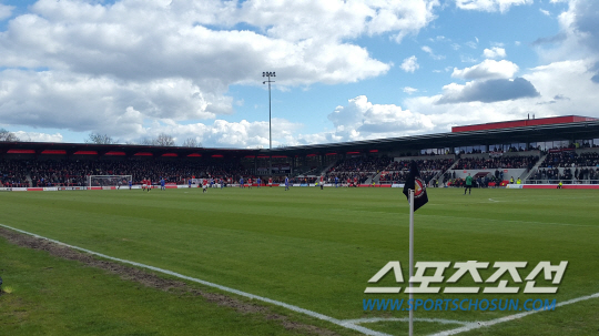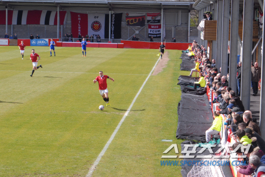 경기장으로 들어갔다. 성인 입장료는 9파운드였다. 티켓은 없었다. 들어가는 문에서 '현금 박치기'다. 10파운드를 내면 1파운드 동전을 거슬러 준다. 흡사 옛날 자료 화면에서나 볼 수 있는 장면이 펼쳐졌다. 4면 가운데 좌석은 본부석에만 있었다. 북쪽 골대 뒤는 '입석'이었다. 나머지 2개면은 좌석도, 입석 공간도 없었다. 팬들은 광고판 뒤에서 서서봤다.