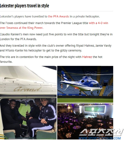 [런던(영국)=이건 스포츠조선닷컴 기자]2016년 영국프로축구선수협회(PFA) 시상식이 24일 저녁(현지시각) 런던에서 열렸다. 행사의 주인공은 역시 레스터시티 선수들이었다. 우선 올해의 선수상을 리야드 마레즈가 받았다. 또 PFA선정 올해의 팀 11명에 마레즈를 비롯해 제이미 바디, 은골로 칸테, 웨스 모건이 이름을 올렸다. 레스터시티는 토트넘과 함께 4명을 배출해냈다.