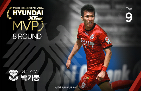 멀티골을 터뜨리며 팀을 위기에서 구한 상주 상무의 박기동(28)이 K리그 클래식 8라운드 '현대엑스티어 MVP'에 선정됐다.
