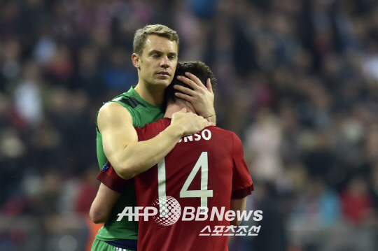 노이어는 4일(한국시각) 홈구장 알리안츠 아레나에서 펼쳐진 아틀레티코 마드리드(스페인·이하 AT마드리드)와의 2015~2016시즌 대회 4강 2차전에서 1실점을 했으나 팀의 2대1 승리를 지켜냈다. 1차전에서 AT마드리드에 0대1로 졌던 뮌헨은 이날 승리로 종합전적(1승1패)과 종합득점(2대2)에서 동률을 이뤘으나 원정 다득점(종합전적과 득점이 같을 경우 원정골 우선) 규정에 의해 고배를 마셨다.