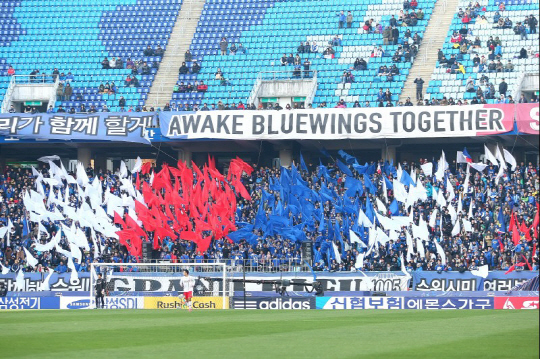 수원은 2011년 부산과의 플레이오프 경기 등 중요한 경기를 앞두고 팬들이 동참하는 깃발 응원을 선보인 바 있다.