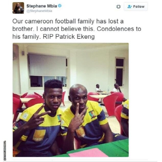 카메룬 국가대표 출신 패트릭 에켕(26·디나모 부큐레슈티)의 경기 중 사망사건에 세계 축구계에 애도 물결이 일고 있다.