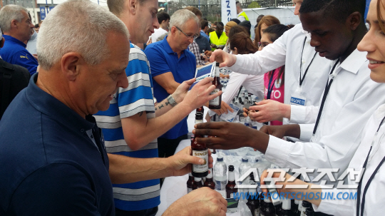 킹파워스타디움 앞은 더 큰 축제 현장이었다. 이날 태국 출신인 비차이 스리바다나프라바 레스터시티 구단주는 전관중에게 맥주를 쐈다. 물론 레스터시티를 후원하는 태국 브랜드 맥주였다. 맥주 한잔 걸친 팬들은 노래를 부르고 소리를 질러댔다. 출근하는 선수들을 향해 박수를 치며 응원을 보내기도 했다.