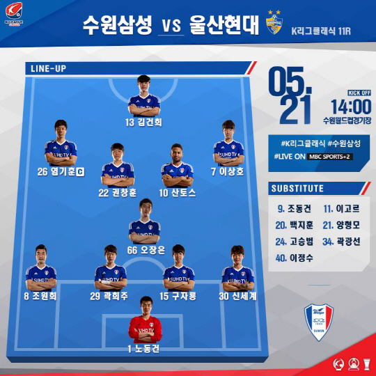 2선에는 염기훈-권창훈-산토스-이상호 등 주전 멤버들이 종전과 그대로 출격했다.