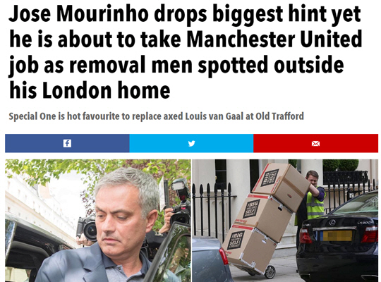 앞서 맨유는 팀에 12년만의 FA컵 우승을 안긴 루이스 판 할 감독의 경질을 공식적으로 발표했다. BBC 등 현지 매체들은 오래전부터 올시즌 종료 직후 판 할 감독이 해임되고 무리뉴 전 감독이 부임할 것이라고 보도해왔다..