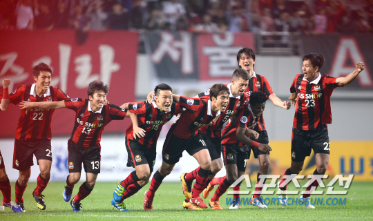 여섯 번째 키커부터는 '연장전'이다. 8번째 키커에서 비로소 '승리의 여신'이 마음을 열었다. 유상훈이 고마이 요시아키의 슈팅을 막아냈고, 김동우가 침착하게 성공시키며 7-6, 대미를 장식했다. 양념도 있었다. 김동우가 슈팅하는 순간 신가드가 벗겨지며 골문 왼쪽으로 날았다. 니시카와가 몸을 날린 방향이었다. 반면 볼은 골대 정면을 향하며 그대로 골망에 꽂혔다. 김동우의 '위장 페널티킥'이라는 우스갯소리로 회자되고 있다. 산 자의 여유이자 행복이었다. 서울은 믿기지 않는 드라마로 아시아챔피언스리그(ACL) 8강에 진출했다.