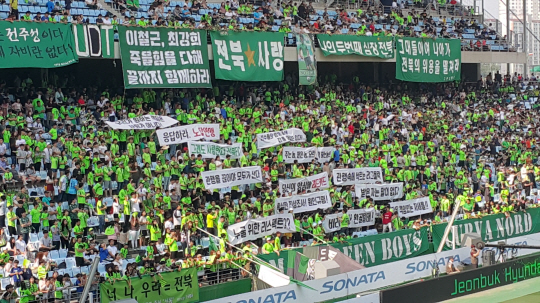 이날 MGB가 내건 걸개 사진을 본 최 감독은 한동안 말을 잇지 못했다. "약체로 설움 받던 전북이라는 팀이 성장하는 모습을 지켜보면서 누구보다 기뻐했던 팬들이다. 한 순간에 자부심을 잃게 된 게 너무 안타깝고 죄송스럽다." 최 감독은 "백마디 말 보다 팬들 앞에서 최선을 다하는 게 우선이다. 그래야 팬들이 입은 상처가 조금이나마 치유될 수 있을 것이라고 믿는다."