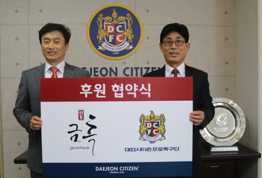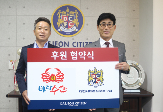 대전 시티즌이 금산흑삼주식회사 금흑과 중부권 최대의 활어회 수산물 도매센터인 바다수산과 후원협약을 체결했다.