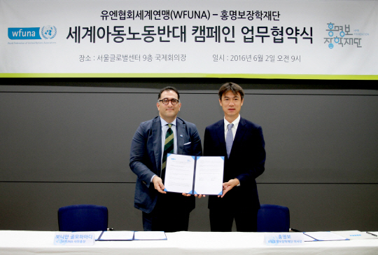 저소득층, 소년소녀 가장, 소아암 환아 등을 후원해 온 홍명보장학재단이 국제비정부기구 유엔협회세계연맹(WFUNA)과 손을 잡았다.