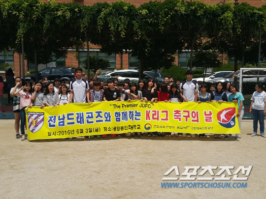 학교 운동장에서는 더운 날씨지만 선수와 학생들이 함께 다치지 않고 즐겁게 운동하는 시간을 가졌다. 땀을 흘리며 마음껏 뛰어 논 학생들은 선수들에게 감사의 인사를 전했다.