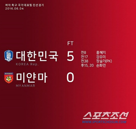 3-0 리드로 시작된 후반. 골 행진의 2막이 올랐다. 후반 15분 손화연이 미얀마 골문을 열었다. 그리고 후반 21분 손화연이 다시 한번 득점포를 가동하며 대미를 장식했다. 5대0. 윤덕여호가 화끈한 원정 승리를 일궜다.