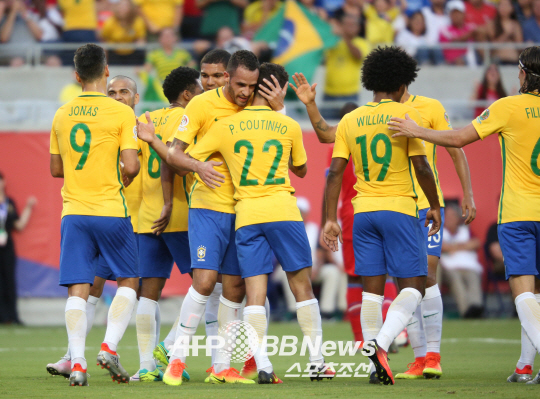 브라질의 골 퍼레이드가 끝나지 않았다. 후반 40분 아우구스투가 아이티의 패스를 차단한 뒤 아크 정면까지 내달렸고 정확한 오른발 땅볼 슈팅으로 아이티 골망을 갈랐다. 이어 후반 추가시간 쿠티뉴가 아크 왼쪽에서 절묘한 오른발로 감아찬 슈팅으로 해트트릭을 달성했다. 경기는 브라질의 7대1 승리로 막을 내렸다.