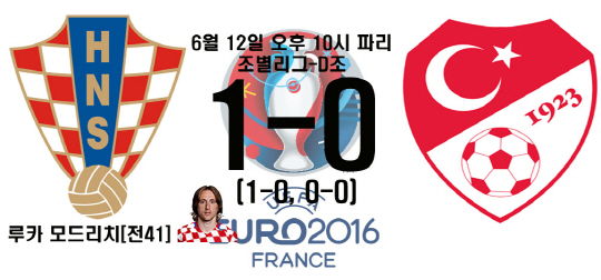 크로아티아는 칼을 갈았다. 경기에 그대로 드러났다. 경기를 지배했다. 슈팅수에서 18대9로 앞섰다. 골문으로 향하는 슈팅도 6개로 2개의 터키를 압도했다. 전반 41분 루카 모드리치의 골로 1대0 승리를 거뒀다. 제대로 설욕했다.