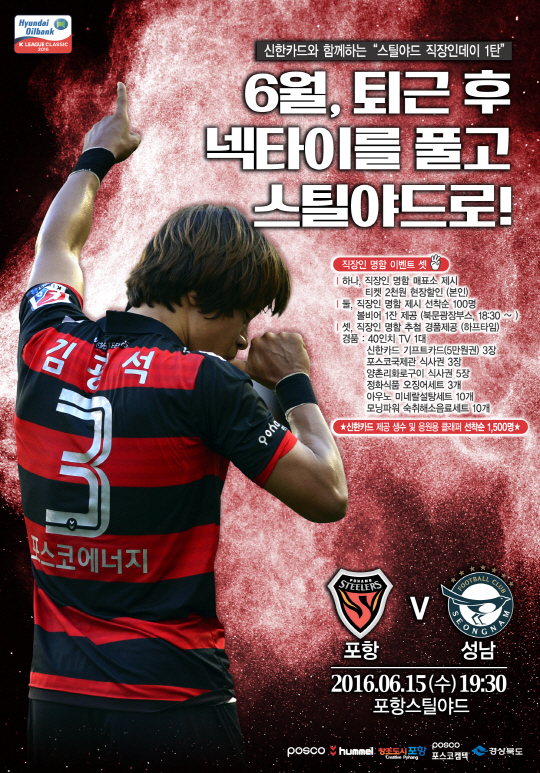포항은 이번 홈 경기에서 더위와 피로에 지친 직장인들과 지역민들의 스트레스를 풀어주기 위해 신한카드와 손잡고 이번 이벤트를 기획했다. 포항은 직장인데이를 기념하여 매표소에 명함을 제시할 경우 현장에서 입장권 할인 혜택(2000원 할인)을 제공하며, 오후 6시30분부터 북문광장에서는 선착순으로 명함을 제시하는 100명에게 볼비어 1잔을 제공한다.