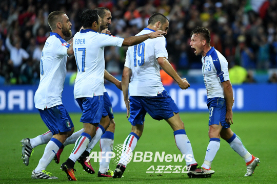 프랑스에서 진행되고 있는 유로2016. 가장 수준 높은 대회로 일컬어진다. 세계 최고의 선수들이 다양한 전술 속에 멋지게 조화된 춤사위를 선보이는 무대다. 출사표를 던진 24개 팀. 약체는 없다. 매 경기가 빅매치다. 그 중에서도 가장 눈길을 끄는 경기가 있었다. 14일(한국시각) 프랑스 리옹의 스타드드리옹에서 열린 이탈리아와 벨기에의 대회 조별리그 E조 1차전. 경기 전 벨기에의 승리가 조심스레 점쳐졌다. 로멜루 루카쿠(23·에버턴), 에덴 아자르(25·첼시), 케빈 더 브라이너(25·맨시티)로 구성된 공격 삼각편대의 화끈한 화력이 높은 점수를 받았다. 반대로 이탈리아는 핵심 전력 전반적이 노쇠했다는 부정적 평가가 지배적이었다. 조르지오 키엘리니(32), 레오나르도 보누치(29), 안드레아 바르잘리(35·이상 유벤투스)로 구성된 이탈리아의 스리백 평균 연령은 32세다.