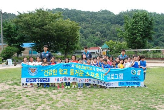 대구FC가 15일 대구 반송초, 왕선중, 대진중을 방문해 한 달여 만에 '건강한 학교! 즐거운 스포츠'를 재개했다.