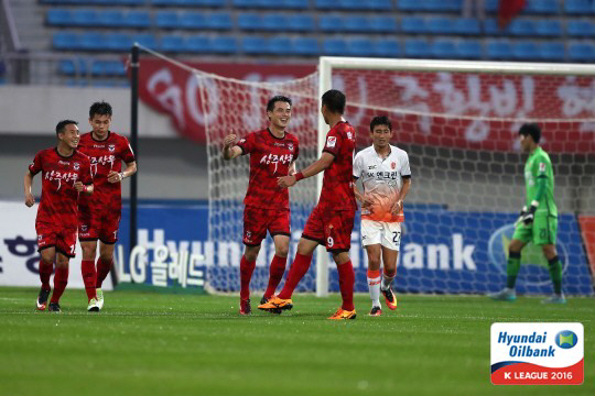 가장 먼제 14라운드 일정에 나선 제주는 상주에게 0대4 충격패를 당했다. 최근 5경기서 4승(1패)을 올렸던 제주는 앞서 리그 13경기를 치르는 동안 29골, 경기당 평균 2골이 넘는 가공할 공격력을 발휘했던 팀이다. 그러나 이날은 '군인정신'으로 무장한 상주를 넘지 못했다. 전반전부터 악몽이 펼쳐졌다. 전반 21분 김성환에 선제골을 내준데 이어 28분 황일수, 41분 임상협까지 전반에만 3골을 내줬다. 후반 19분에는 박기동의 도움을 받은 박준태에게 '확인사살'을 당했다.