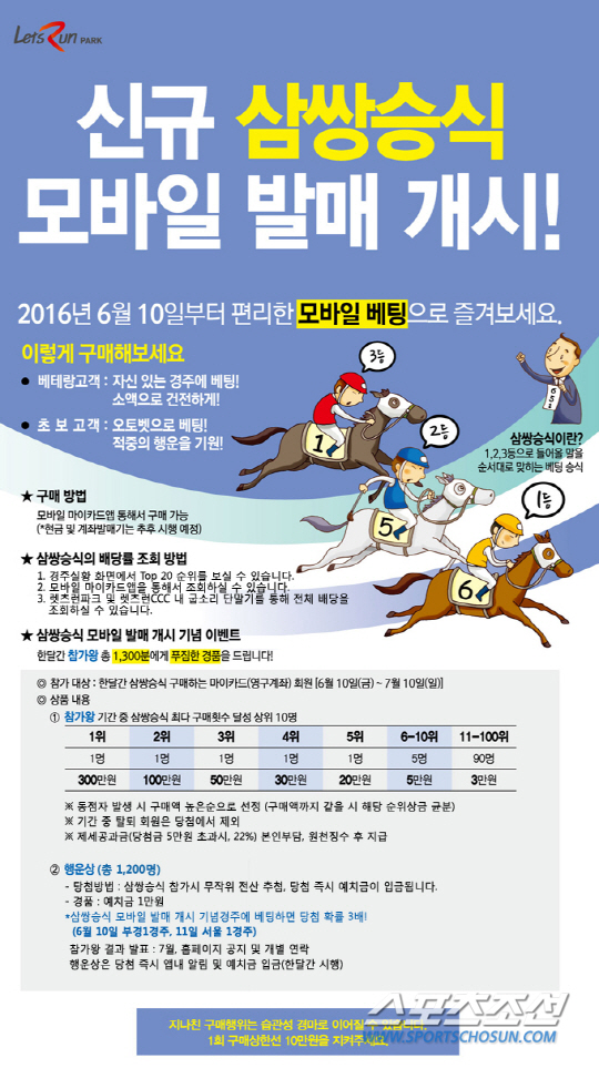 삼쌍승식 이용 방식 및 이벤트 등과 관련된 세부 내용은 한국마사회 홈페이지(www.kra.co.kr)에서 확인 가능하다.