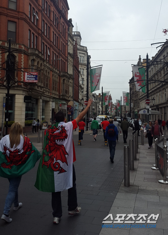 카디프 중앙역에서 카디프성까지 펼쳐져있는 세인트메리스트리트에는 '어 드라이그 고흐(Y Ddraig Goch, 웨일스의 국기)'가 쫙 펼쳐져 있었다. 웨일스의 국기를 두르고, 붉은 유니폼을 입은 사람들이 결전을 준비하고 있었다. 공식 팬존이 있는 뷰트 파크까지 걸어가며 함성을 지르고 노래를 불렀다.