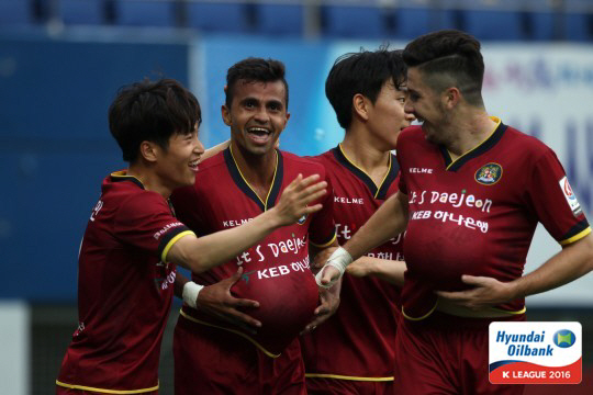 대전은 18일 대전월드컵경기장에서 열린 2016년 현대오일뱅크 K리그 챌린지 2016 18라운드 충주 험멜과의 홈 경기에서 앞세워 3대1로 완승했다.