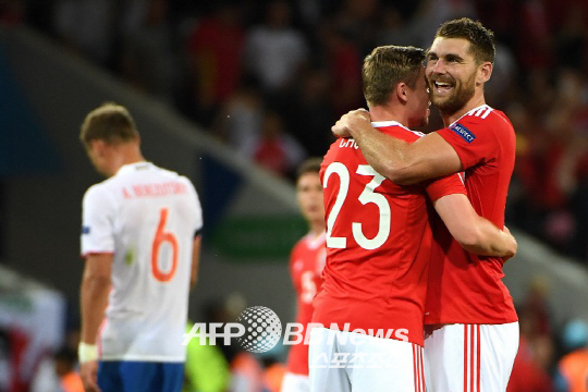 웨일즈는 21일(한국시각) 프랑스 툴루즈의 스타드 뮈니시팔에서 가진 러시아와의 대회 조별리그 B조 최종전에서 3대0으로 이겼다. 2승1패를 기록한 웨일즈(승점 6)는 같은날 슬로바키아와 득점없이 비긴 잉글랜드(1승2무·승점 5)를 제치고 B조 1위로 16강에 진출했다. 러시아는 1무 2패로 탈락했다.