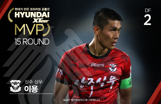 2016년 현대오일뱅크 K리그 클래식 15라운드 최고의 별은 상주 풀백 이 용(30)이었다.