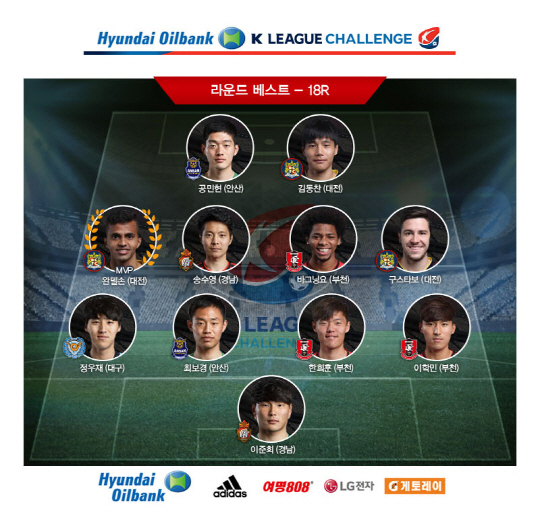 한편, 챌린지(2부리그) 18라운드 MVP에는 지난 18일 충주를 상대로 1골-1도움을 기록하며 팀의 승리를 이끈 완델손(대전)이 선정됐다.