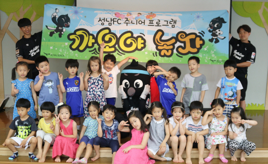 프로축구 성남FC가 준비한 어린이집 방문프로그램 '까오야 놀자!'가 출발부터 호응을 받고 있다.